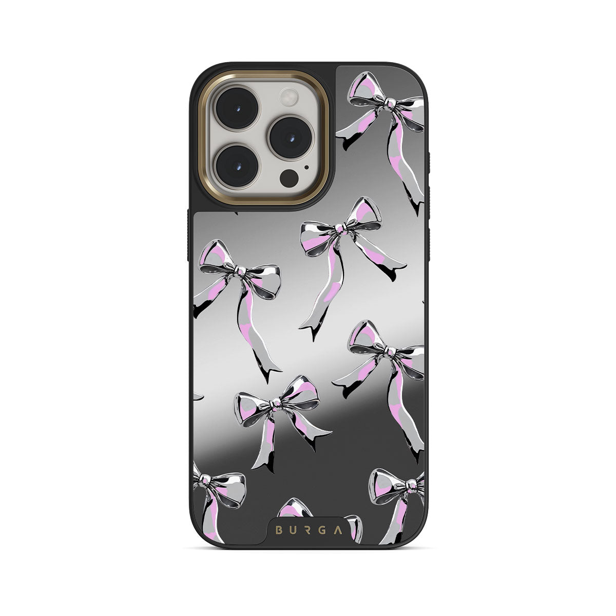 此設計特色:粉色蝴蝶結、絲帶、粉彩、可愛細節、鏡面