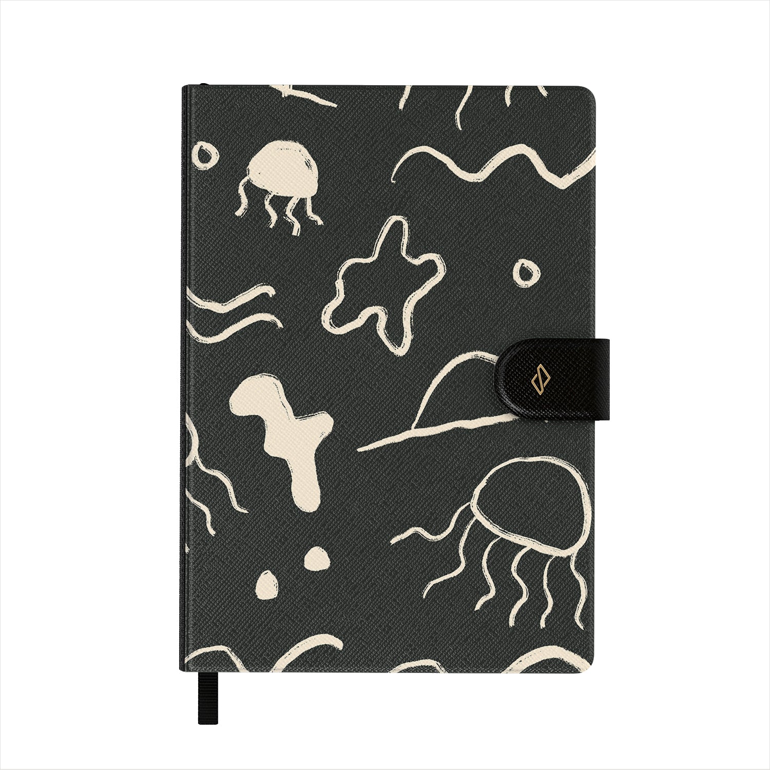 BURGA 精心設計的圖案,搭配 Vegan Faux 皮革封面,頂部配有優雅的黑色絲帶書籤。