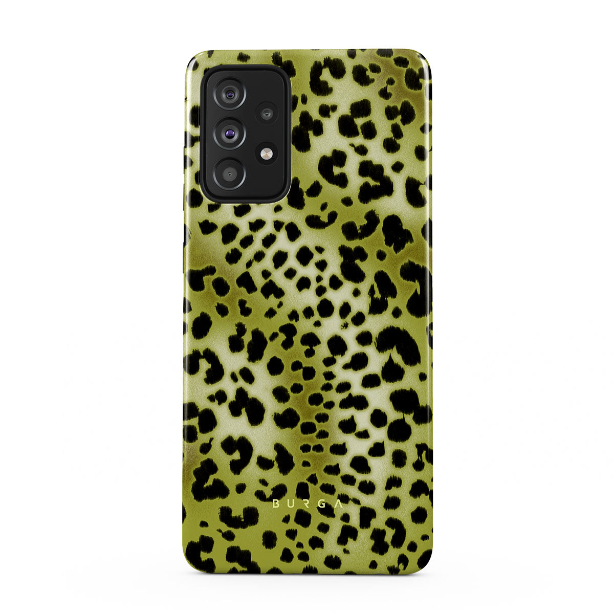 此設計特色:豹子印花,斑點,橄欖綠,動物印花