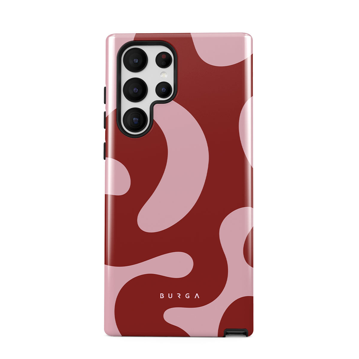此設計特色:波浪,抽象圖案,深紅色漩渦,粉紅色漩渦.