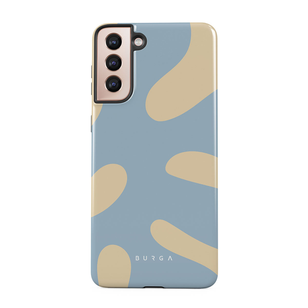 此設計特色:波浪,抽象圖案,淺藍色漩渦,奶油黃色漩渦.
