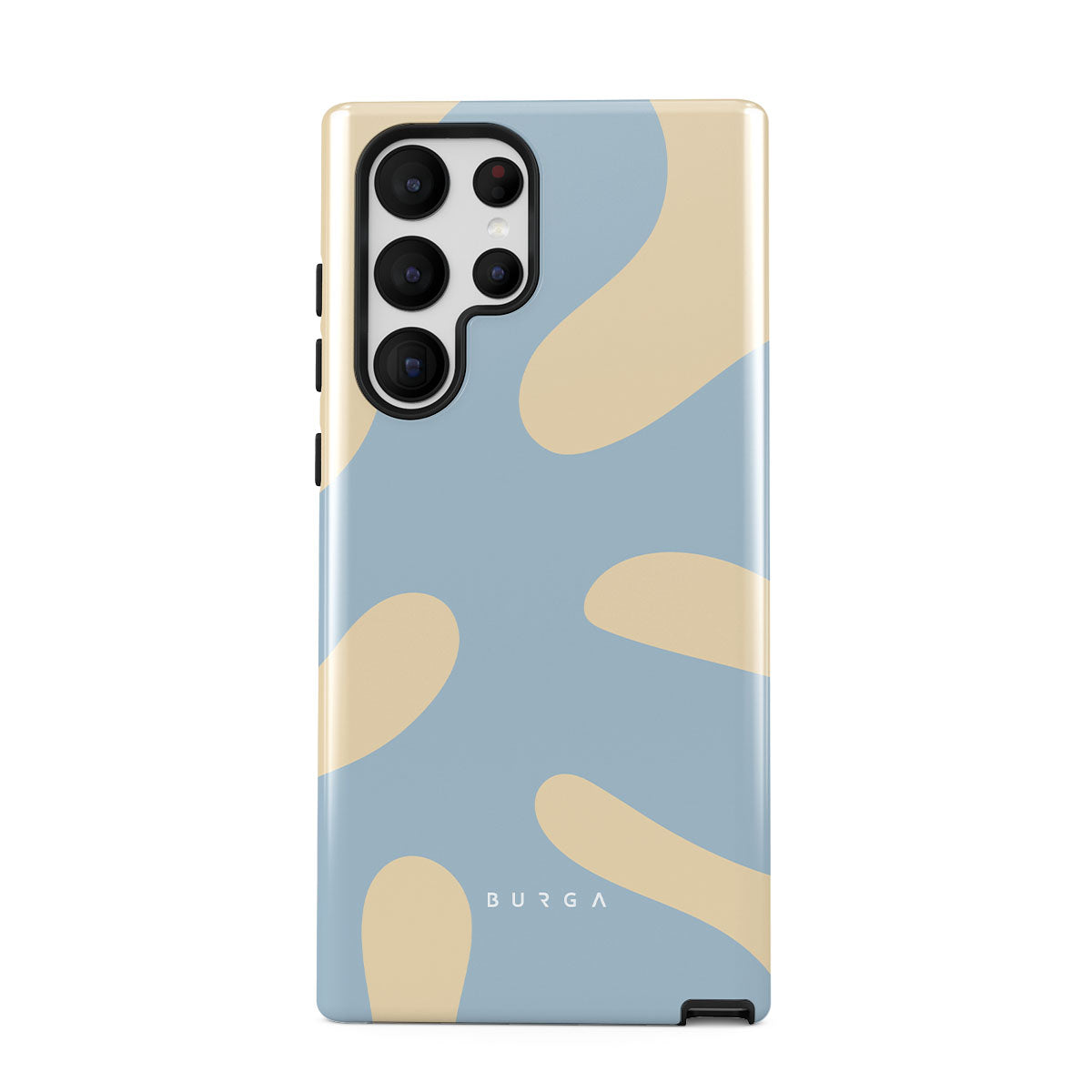 此設計特色:波浪,抽象圖案,淺藍色漩渦,奶油黃色漩渦.