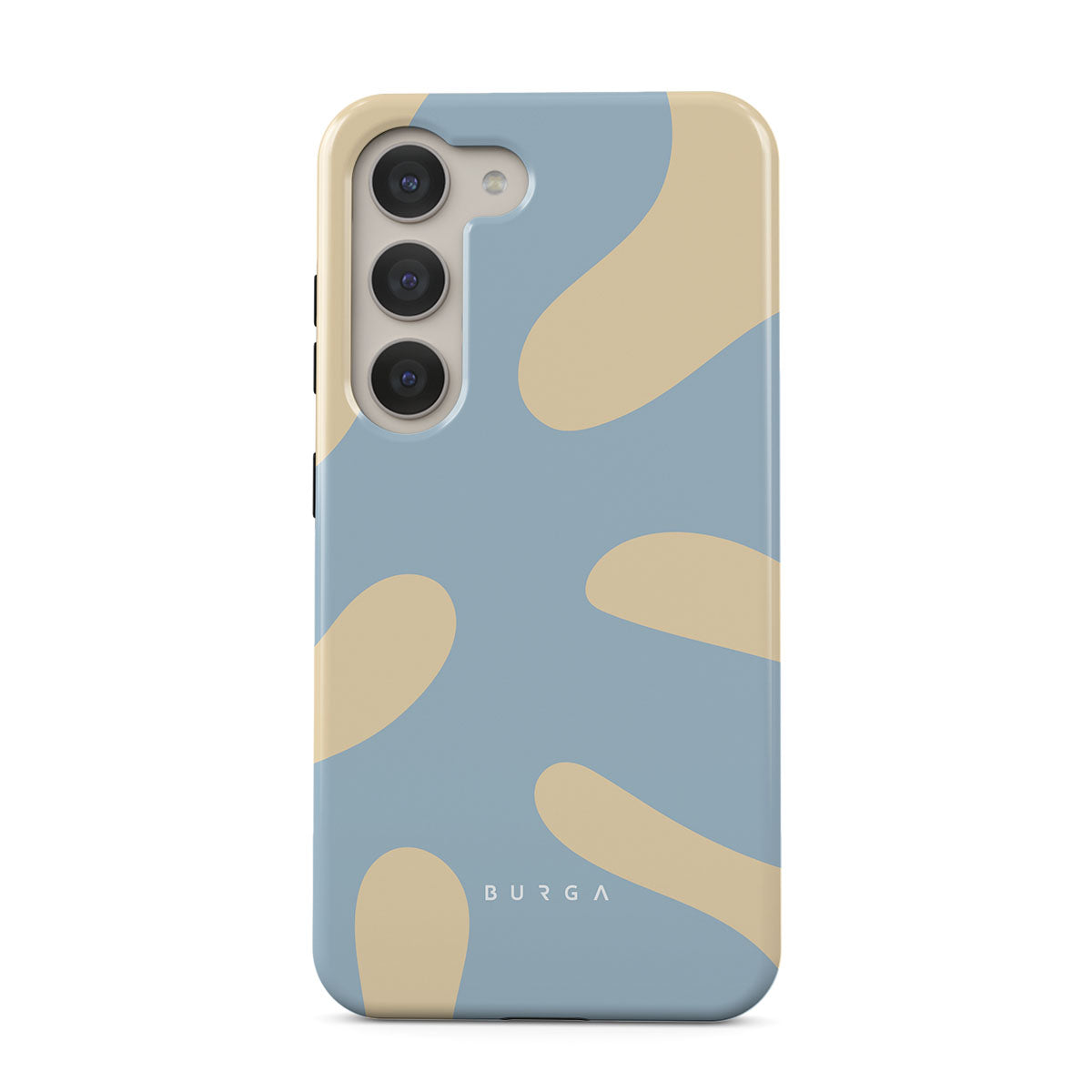 此設計特色:波浪,抽象圖案,淺藍色漩渦,奶油黃色漩渦.