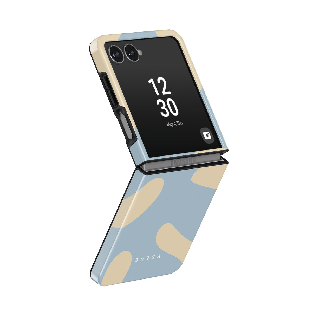 此設計特色:波浪,抽象圖案,淺藍色漩渦,奶油黃色漩渦.