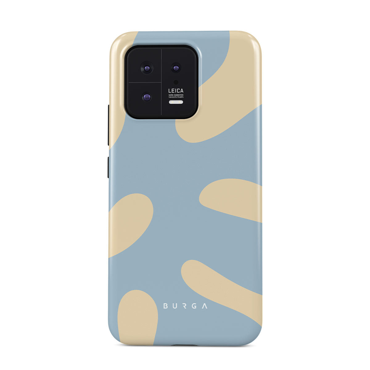 此設計特色:波浪,抽象圖案,淺藍色漩渦,奶油黃色漩渦.