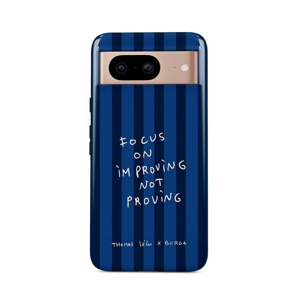 此設計特色:手寫體、引用句、藍色條紋
