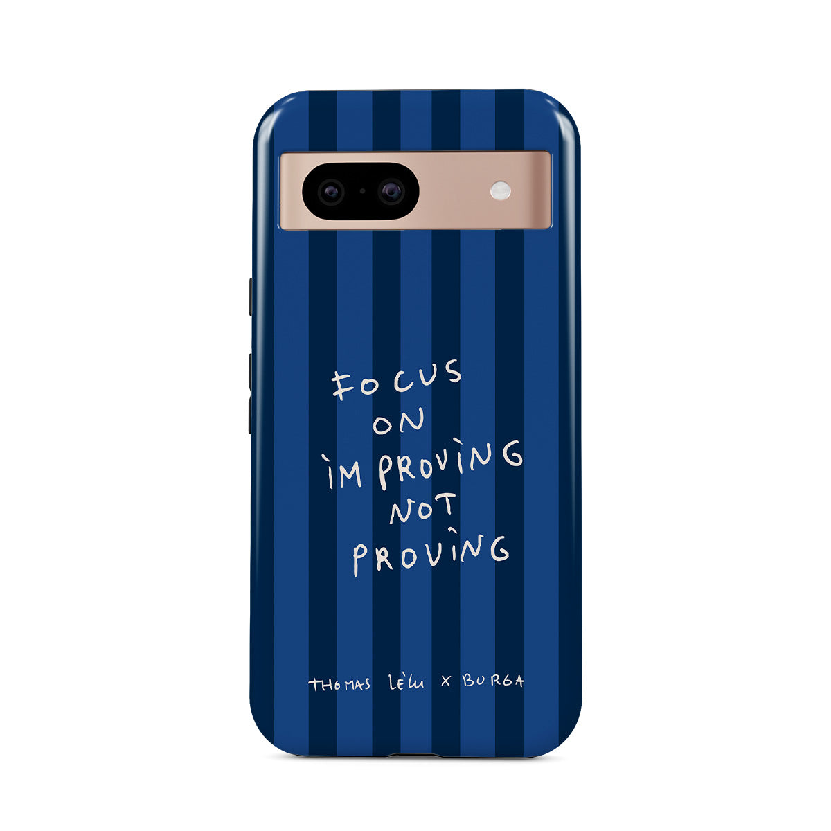 此設計特色:手寫體、引用句、藍色條紋