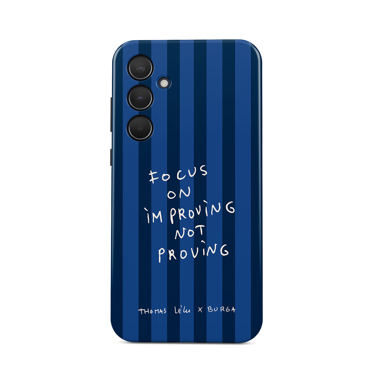此設計特色:手寫體、引用句、藍色條紋