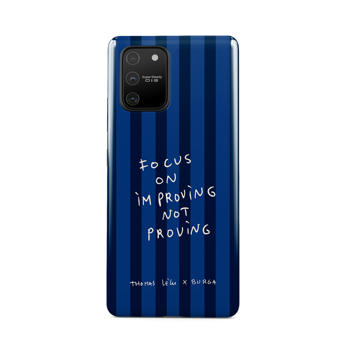 此設計特色:手寫體、引用句、藍色條紋