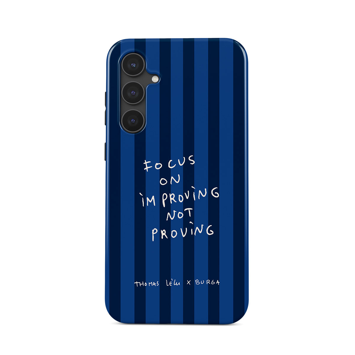 此設計特色:手寫體、引用句、藍色條紋