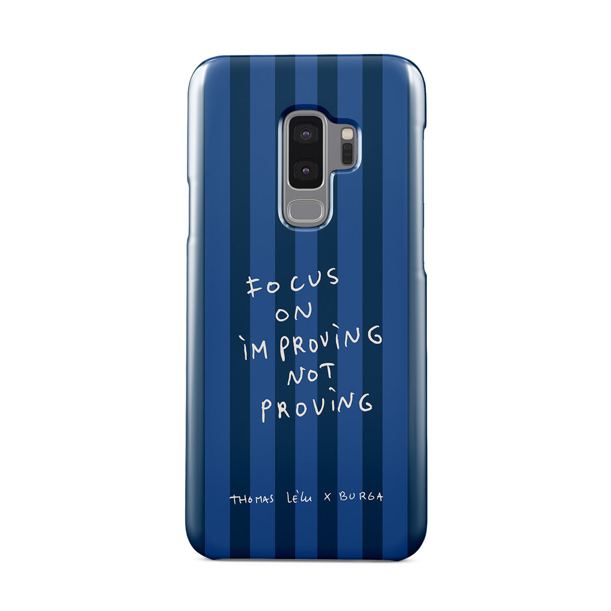 此設計特色:手寫體、引用句、藍色條紋