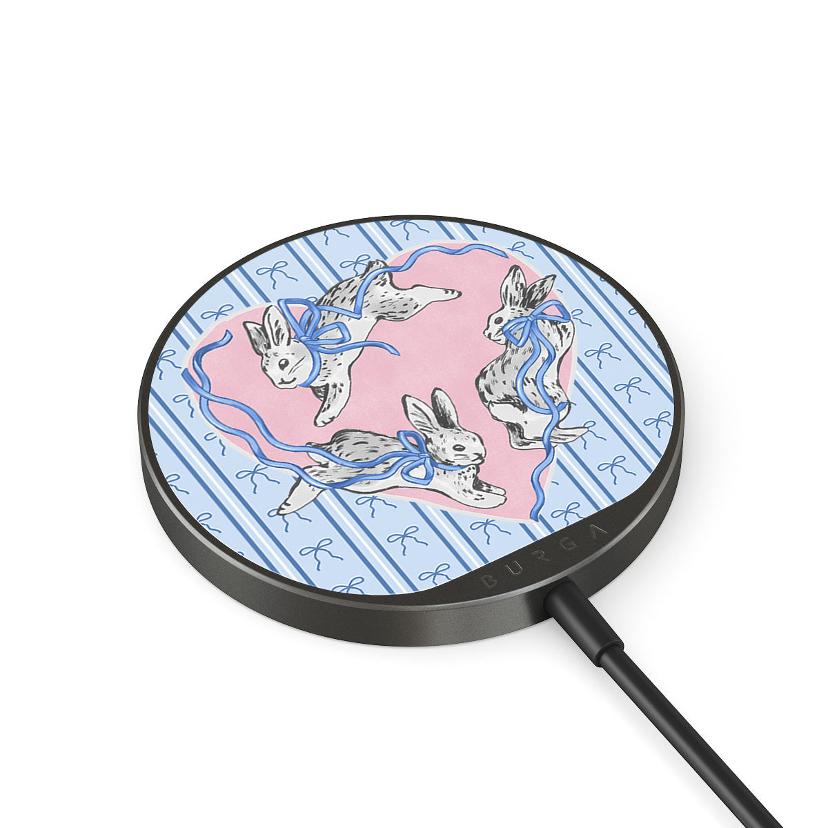 內建 1.5 公尺傳輸線,無論在辦公室、沙發上,還是機場休息室,都能輕鬆充電。BURGA 玻璃背板提供超過 500 款設計任君選,讓充電器與手機殼一樣時尚。