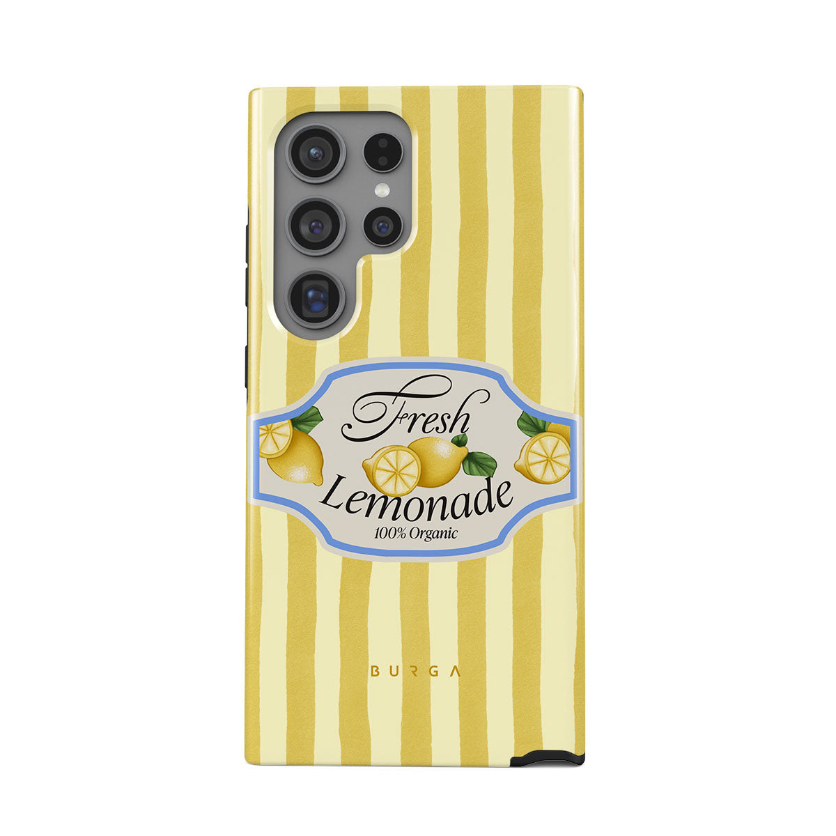 此設計特色:檸檬、黃色條紋、俏皮的圖形