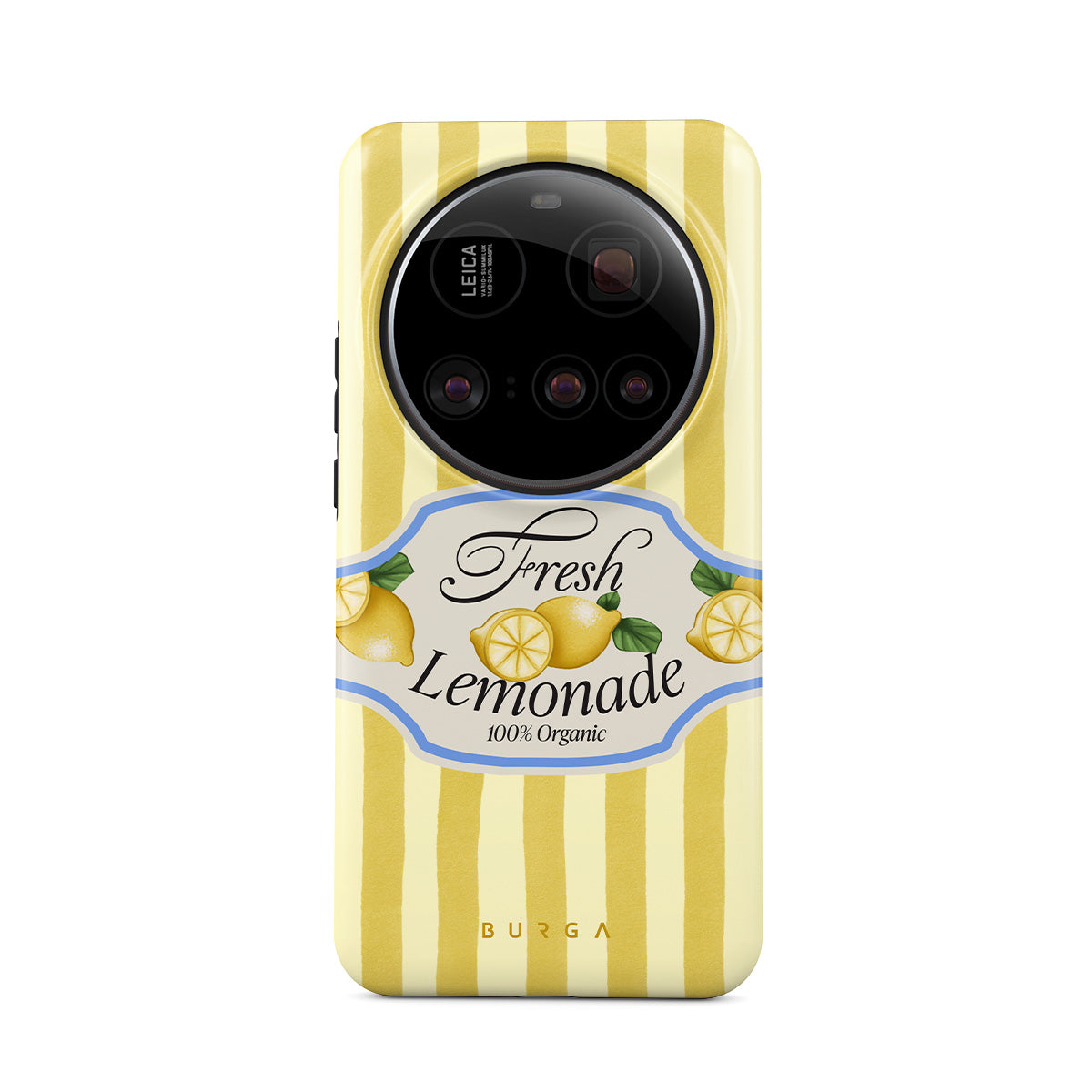 此設計特色:檸檬、黃色條紋、俏皮的圖形