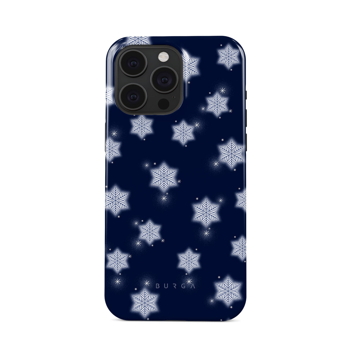 此設計特色:白色雪花,深藍色背景,冬季雪花圖案,幾何雪花,經典冬季設計