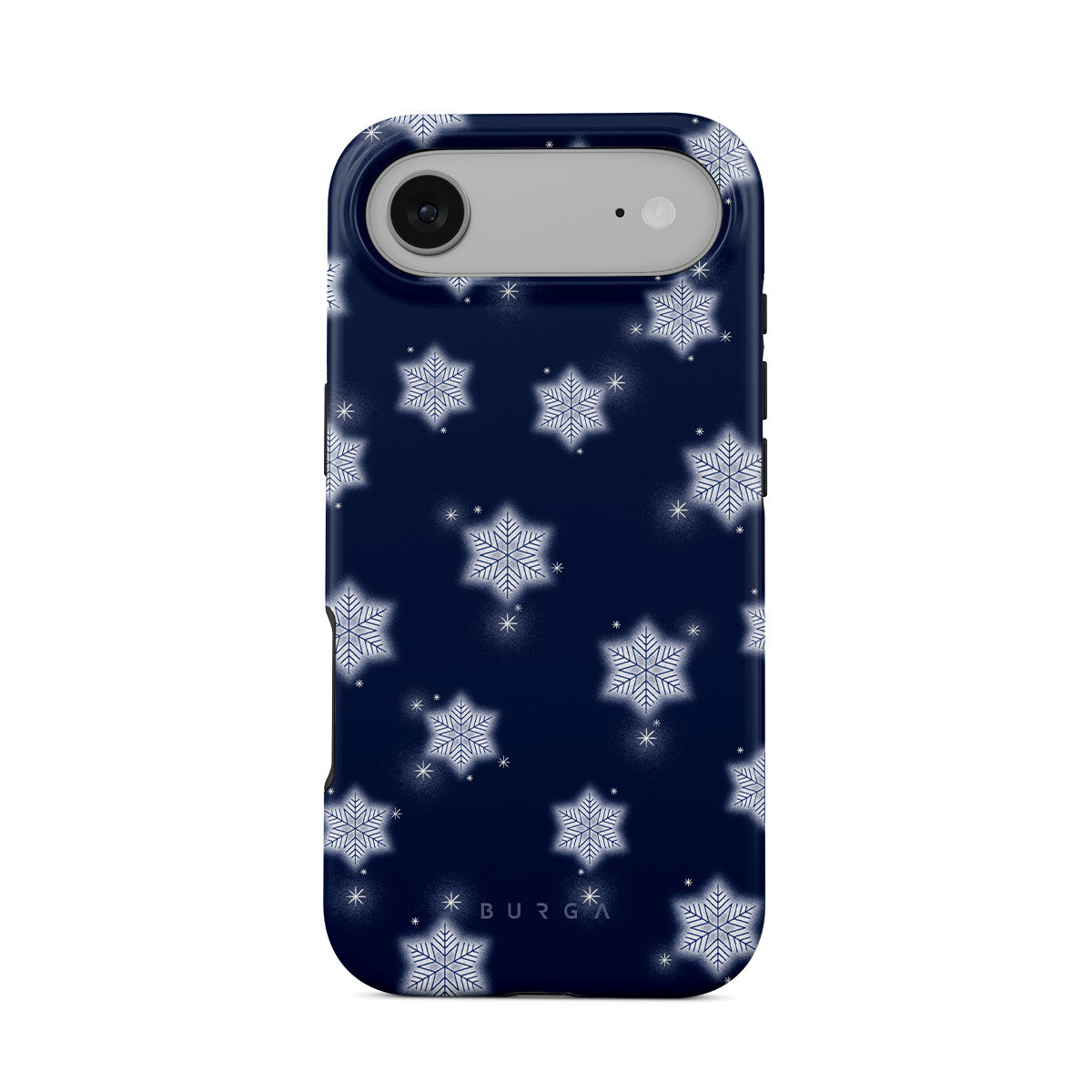 此設計特色:白色雪花,深藍色背景,冬季雪花圖案,幾何雪花,經典冬季設計