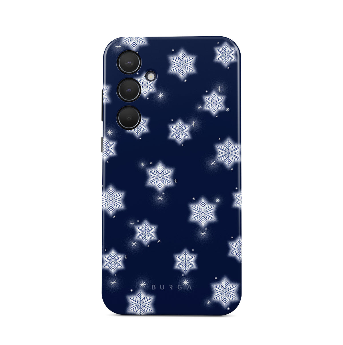 此設計特色:白色雪花,深藍色背景,冬季雪花圖案,幾何雪花,經典冬季設計