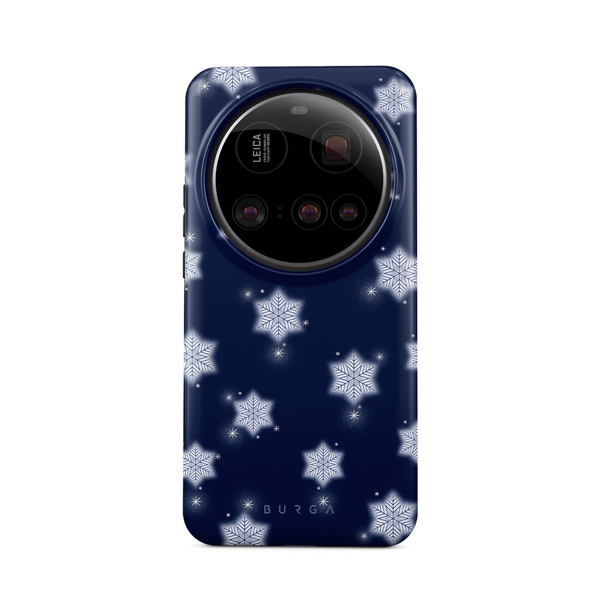 此設計特色:白色雪花,深藍色背景,冬季雪花圖案,幾何雪花,經典冬季設計