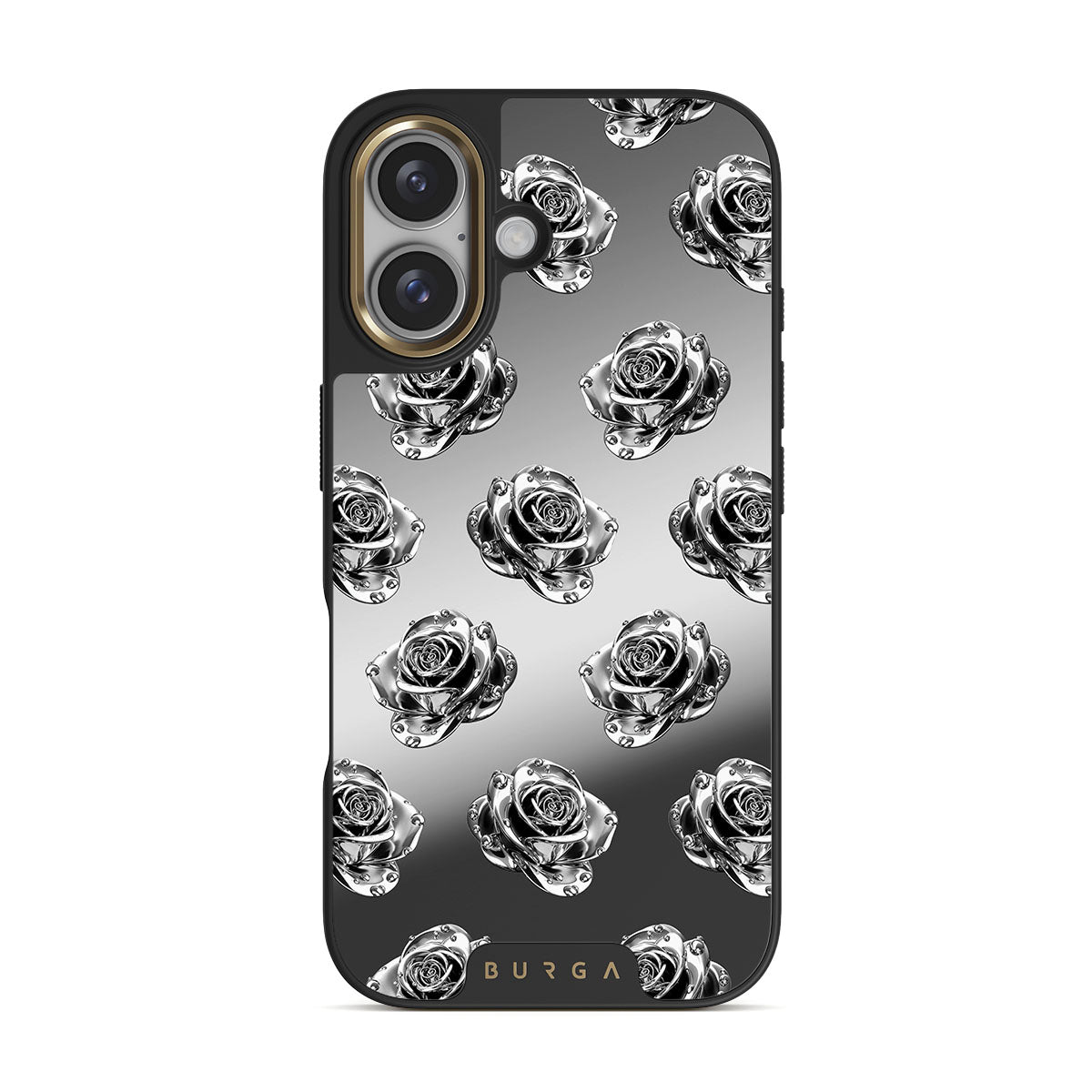 此設計特色:玫瑰、銀色、金屬、花卉、鏡面