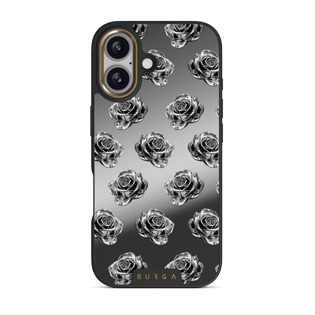 此設計特色:玫瑰、銀色、金屬、花卉、鏡面