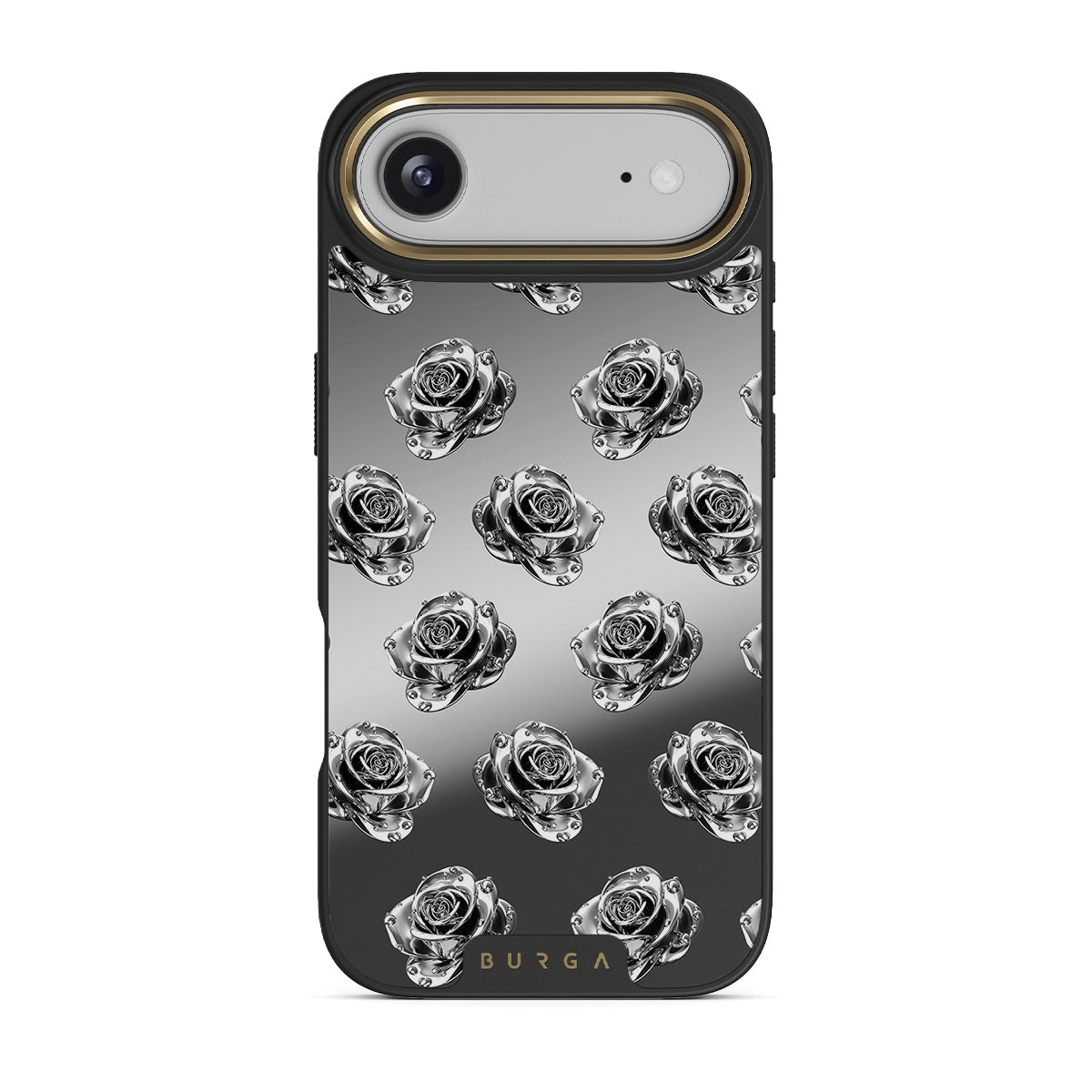 此設計特色:玫瑰、銀色、金屬、花卉、鏡面
