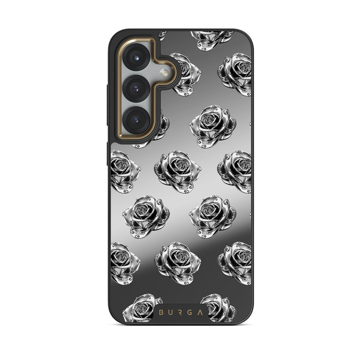 此設計特色:玫瑰、銀色、金屬、花卉、鏡面
