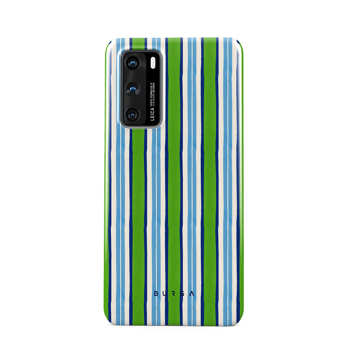 此設計特色: 绿色、蓝色和白色的纵向条纹