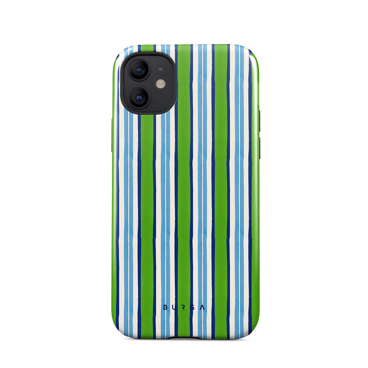 此設計特色: 绿色、蓝色和白色的纵向条纹