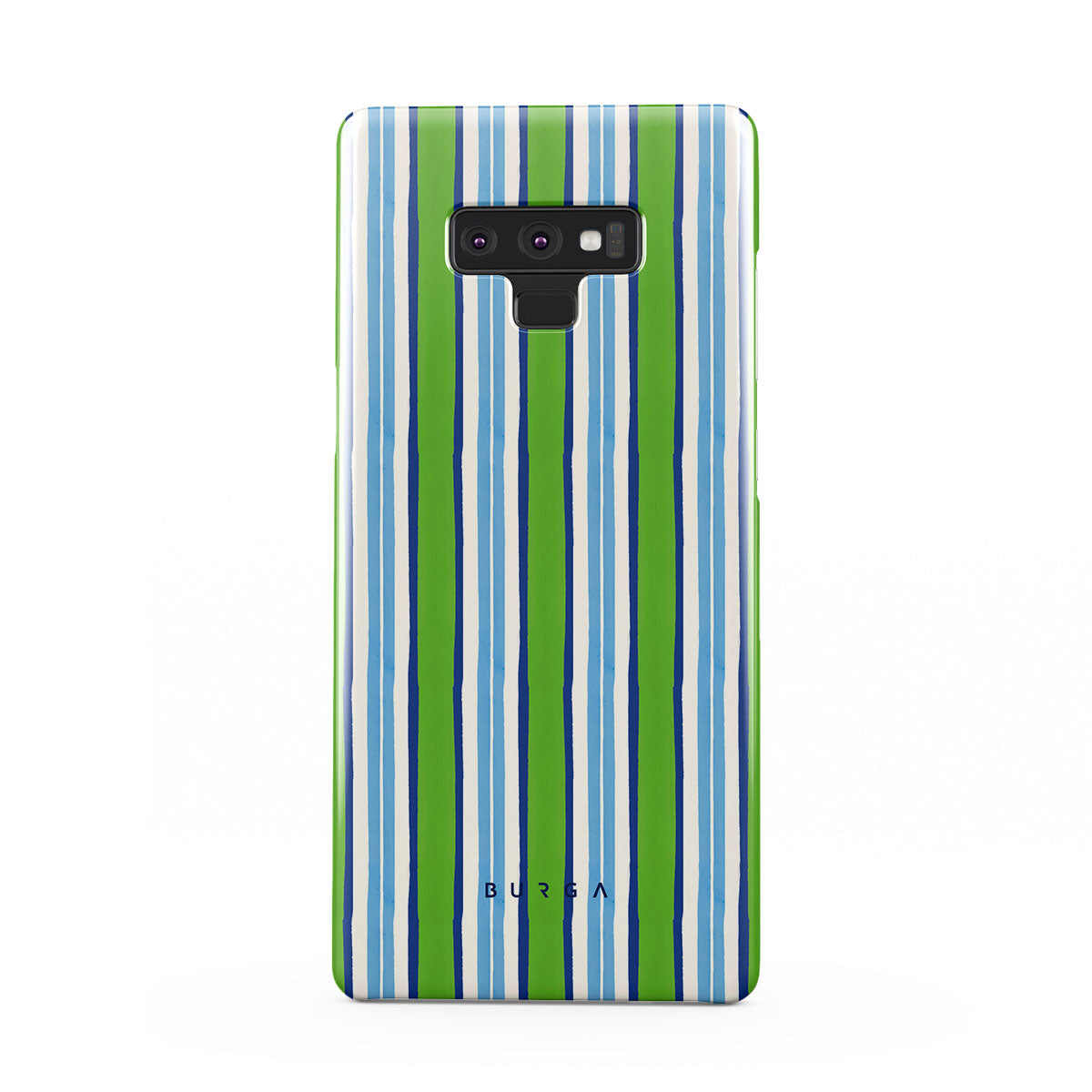 此設計特色: 绿色、蓝色和白色的纵向条纹