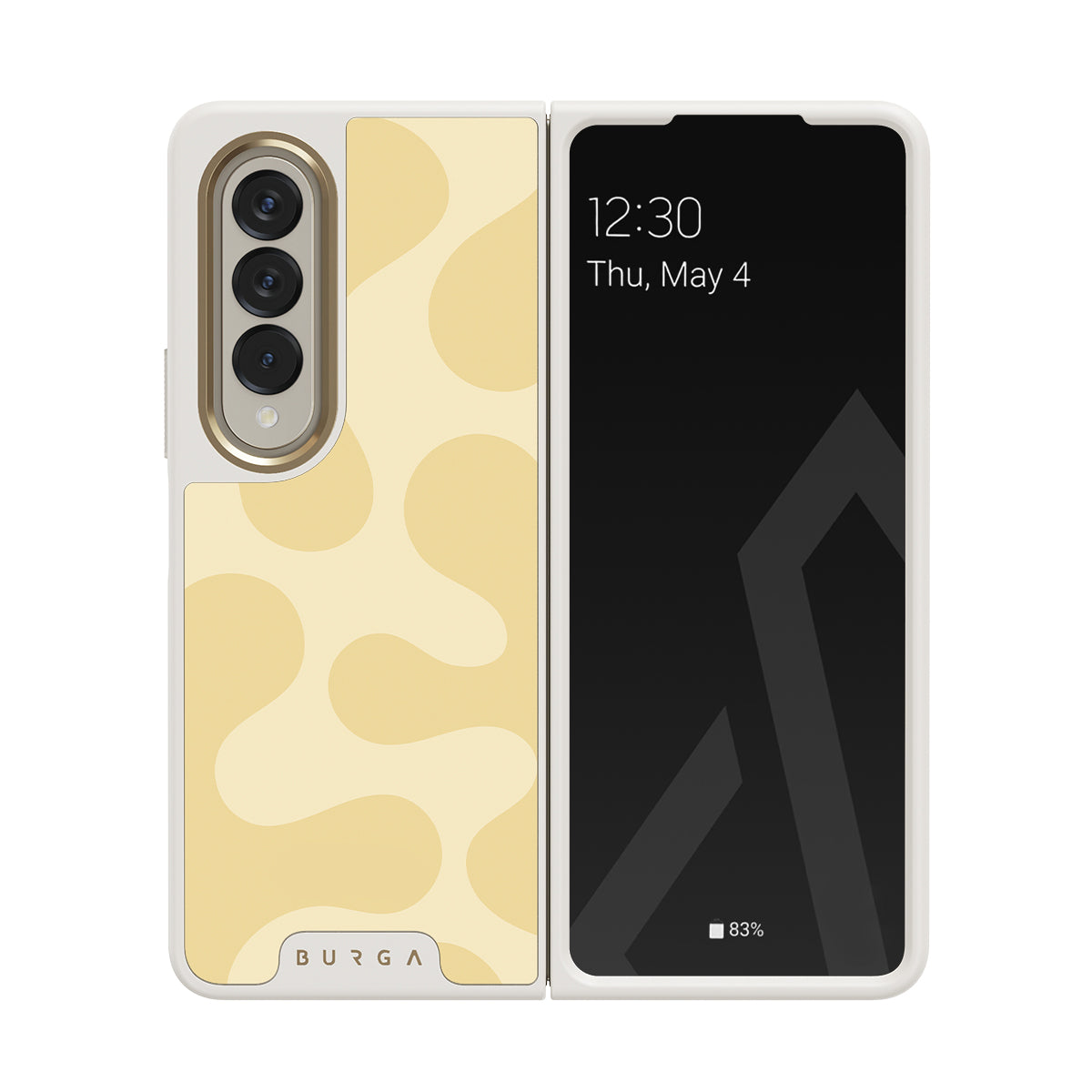 此設計特色:波浪、抽象圖案、溫暖的奶油漩渦、金黃色漩渦