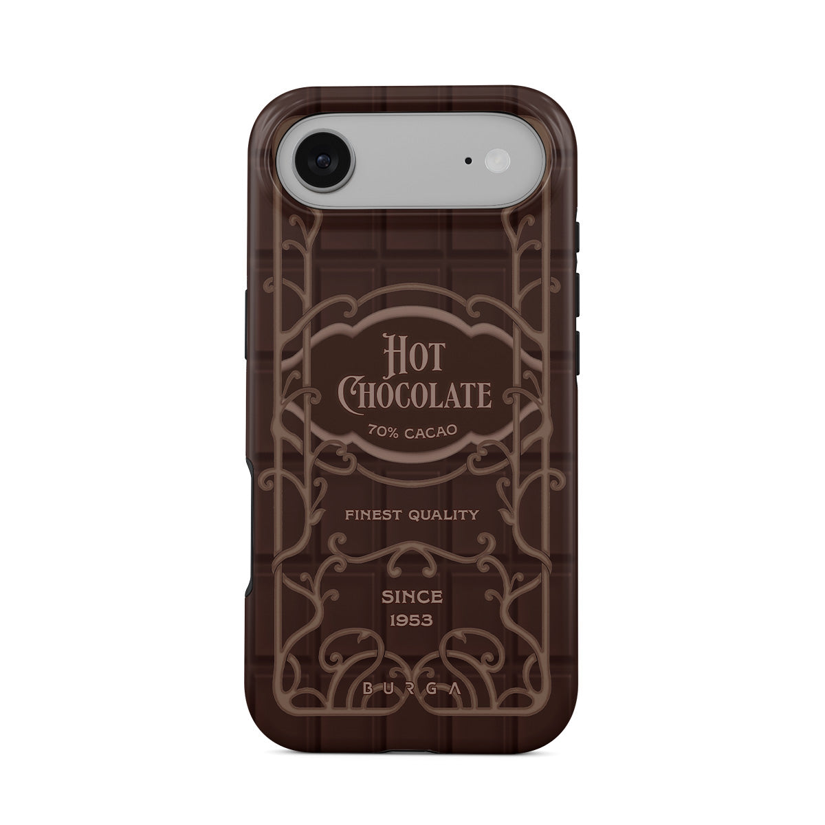 此設計特色:熱巧克力標籤,棕色巧克力設計,復古包裝風格