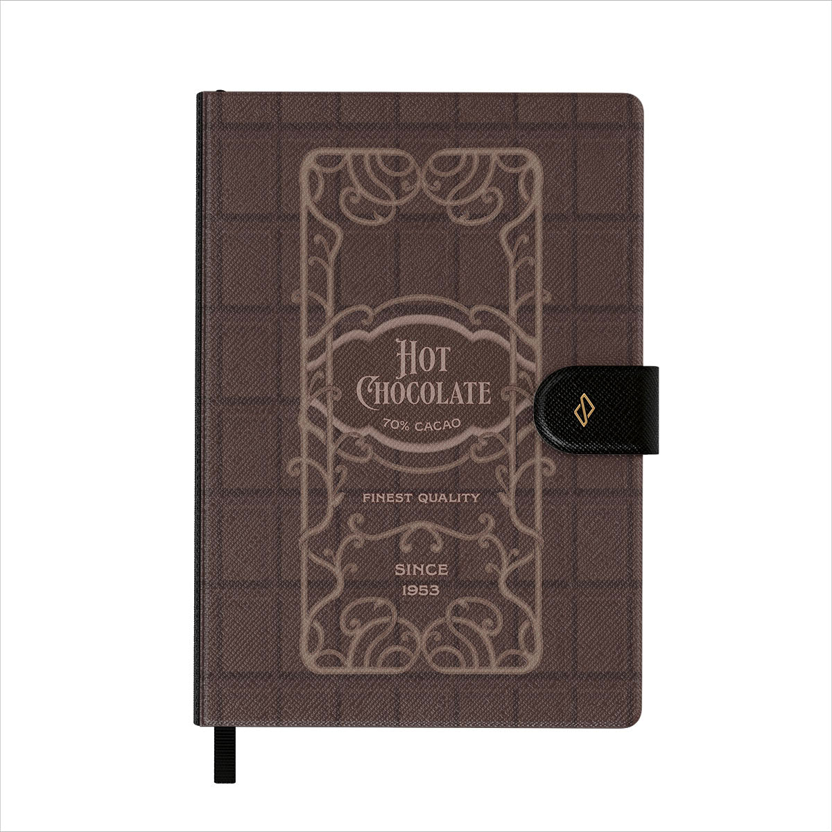 此設計特色:熱巧克力標籤,棕色巧克力設計,復古包裝風格