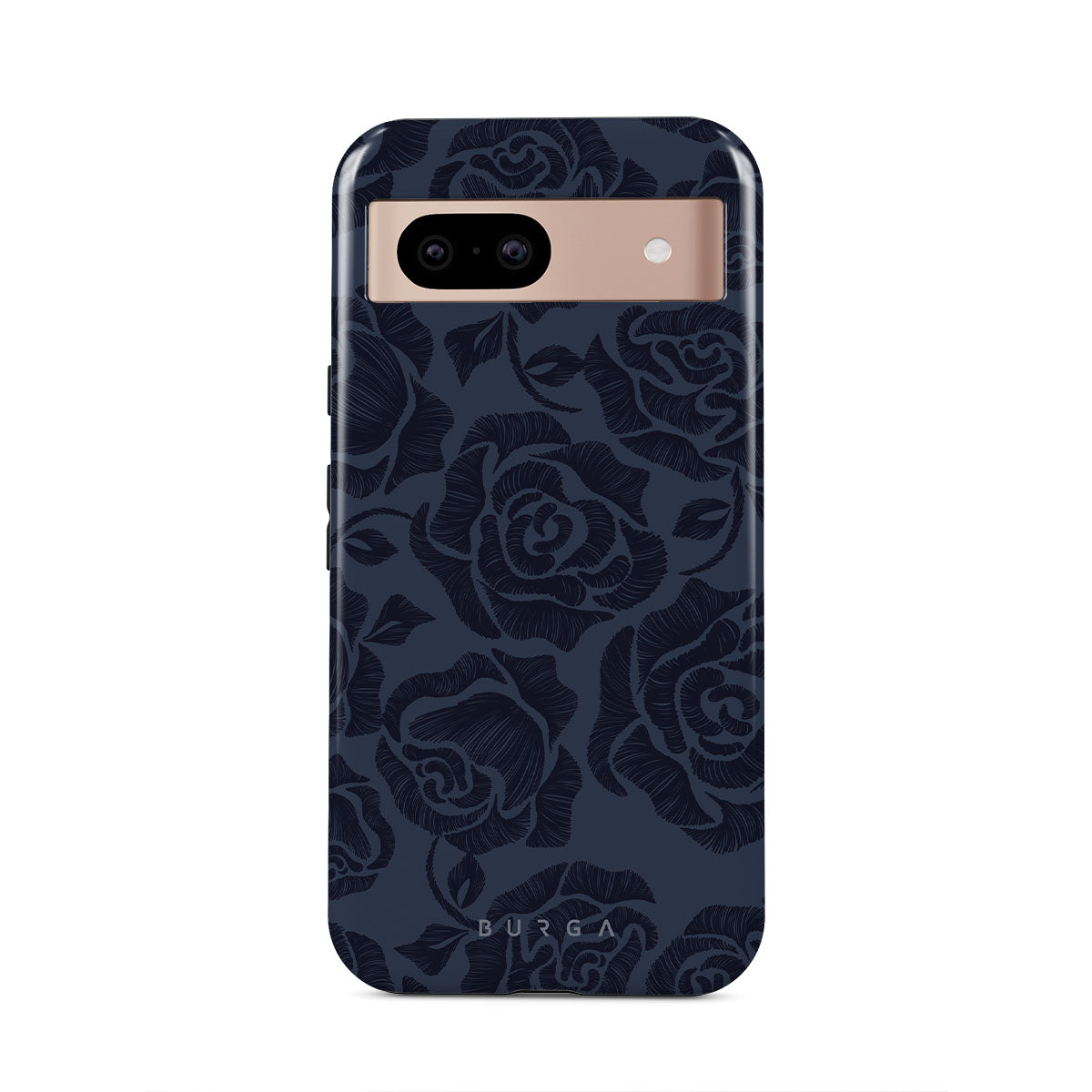 此設計包含:銀蓮花、花卉印花、深藍玫瑰、陰影效果。