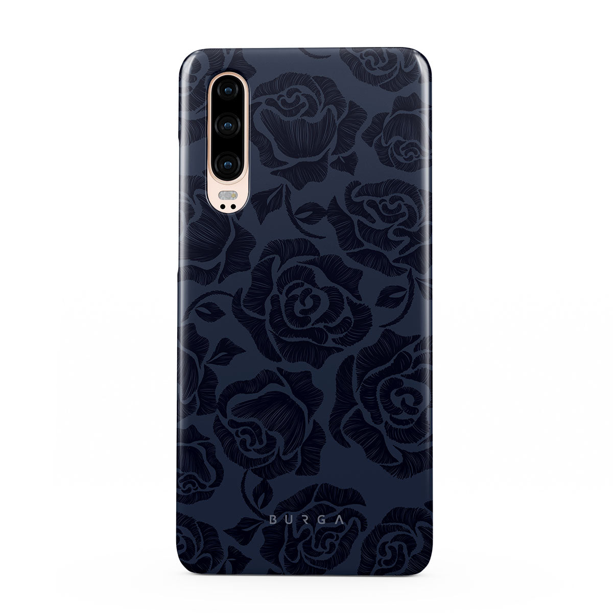 此設計包含:銀蓮花、花卉印花、深藍玫瑰、陰影效果。