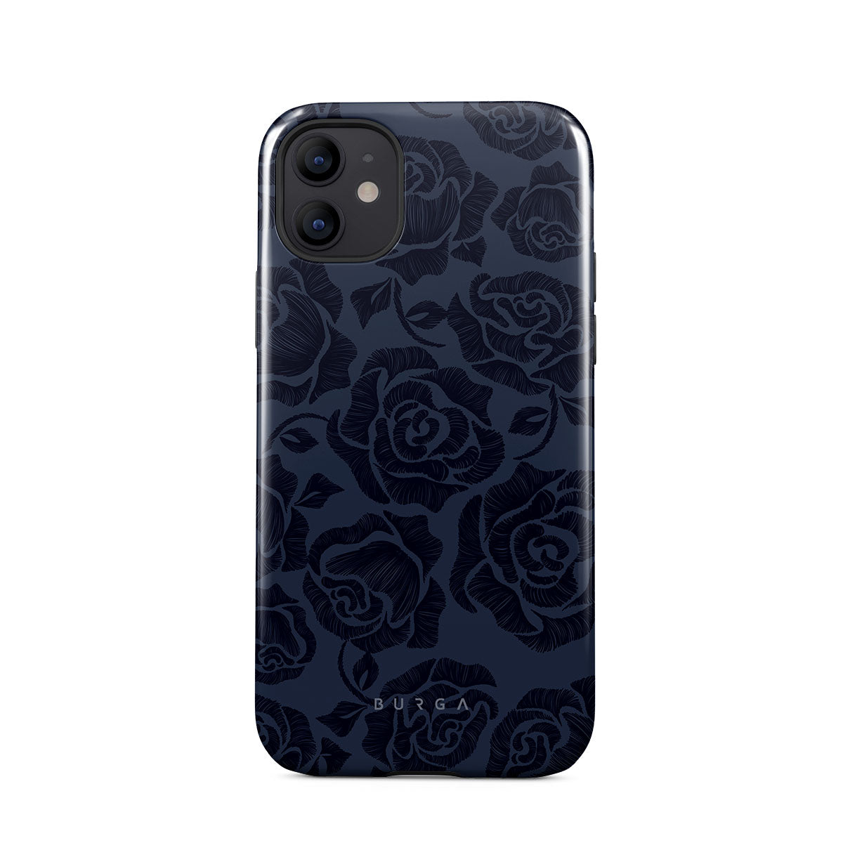 此設計包含:銀蓮花、花卉印花、深藍玫瑰、陰影效果。