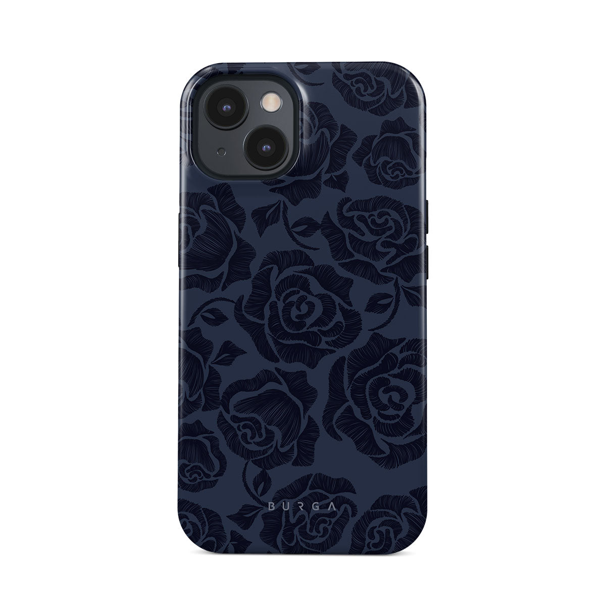 此設計包含:銀蓮花、花卉印花、深藍玫瑰、陰影效果。