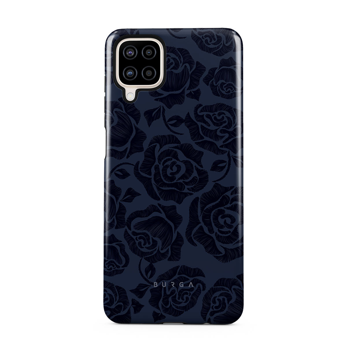 此設計包含:銀蓮花、花卉印花、深藍玫瑰、陰影效果。