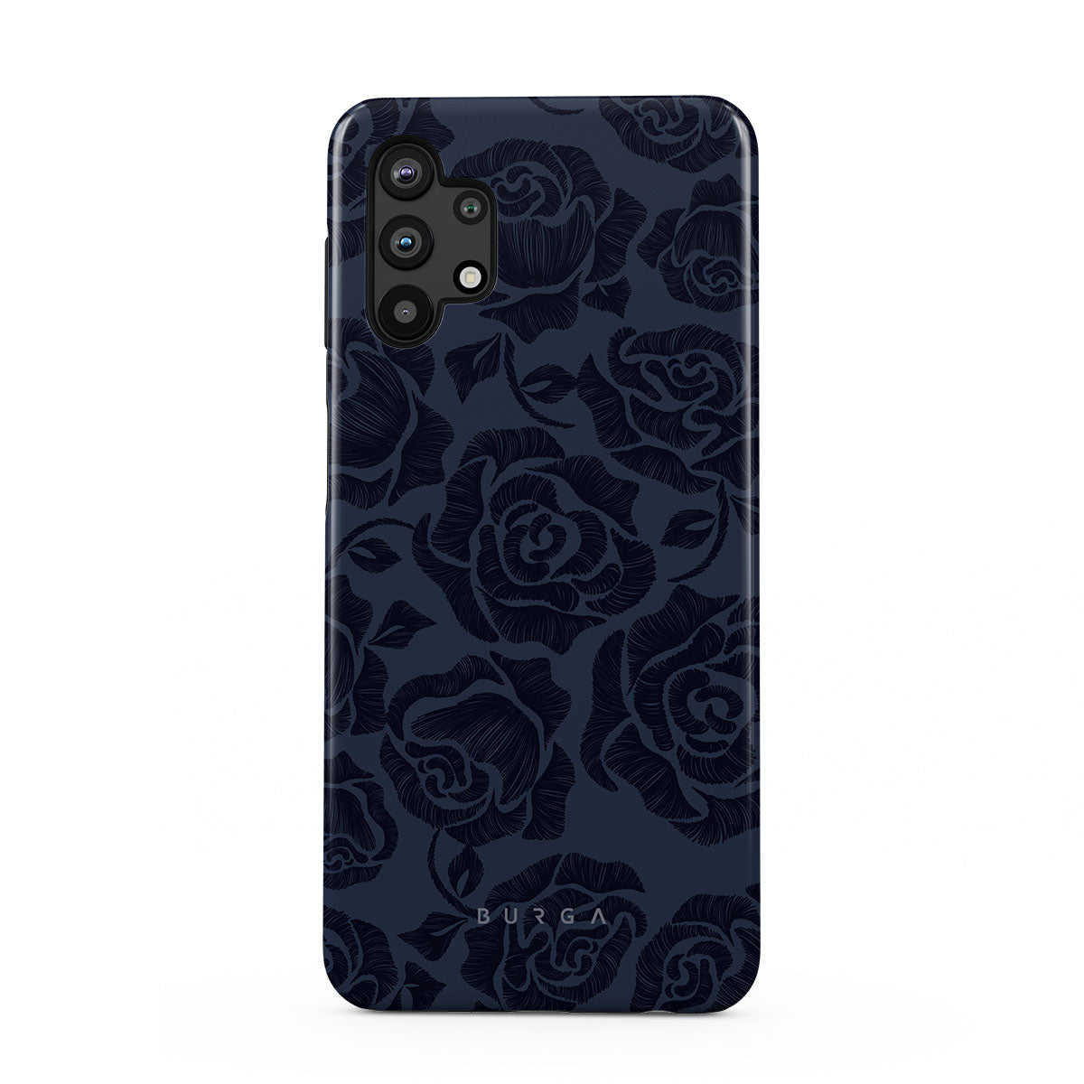 此設計包含:銀蓮花、花卉印花、深藍玫瑰、陰影效果。