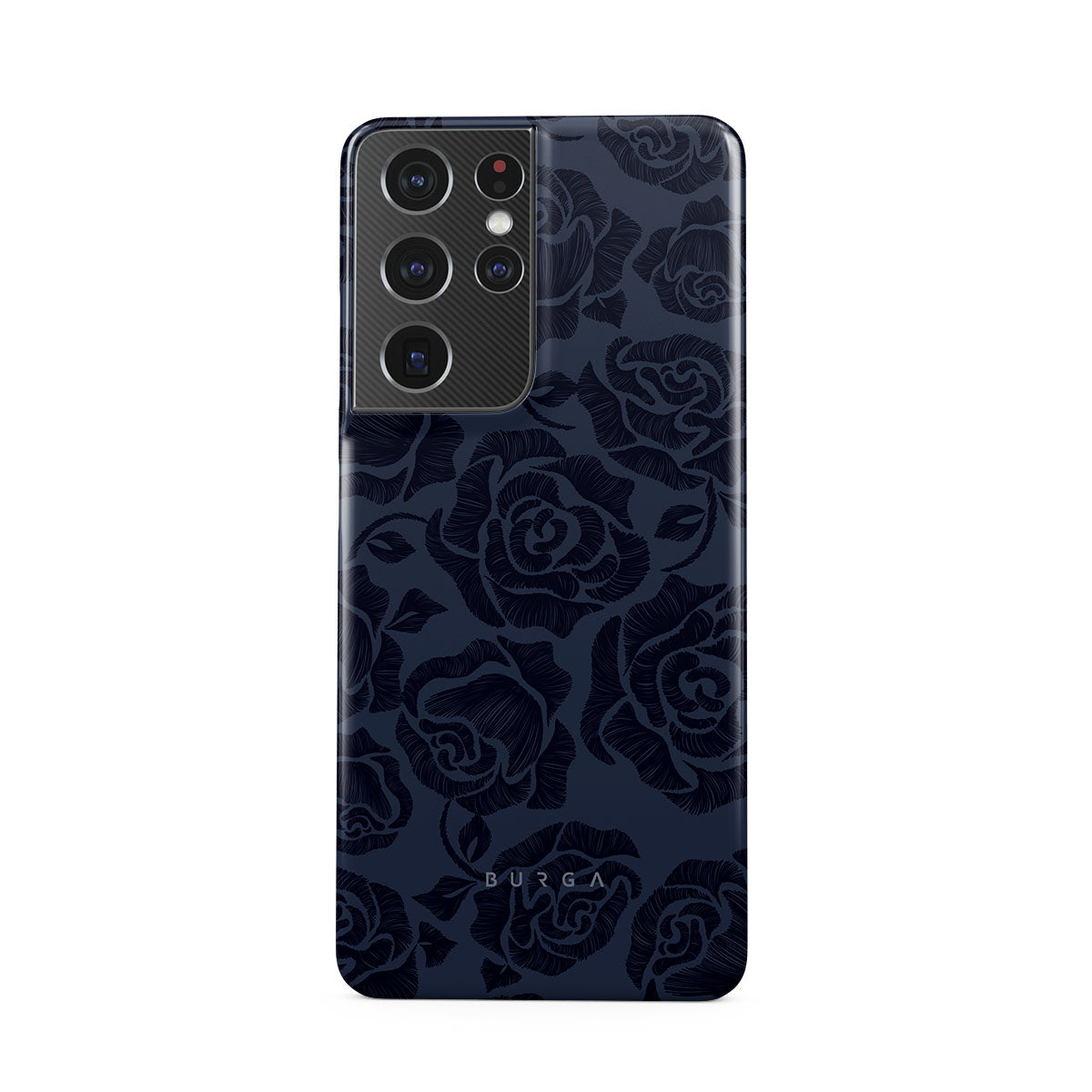 此設計包含:銀蓮花、花卉印花、深藍玫瑰、陰影效果。