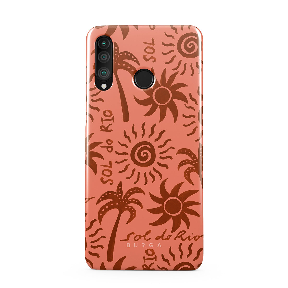 此設計特色: 太陽圖案、棕櫚樹、抽象形狀、溫暖的地球色調