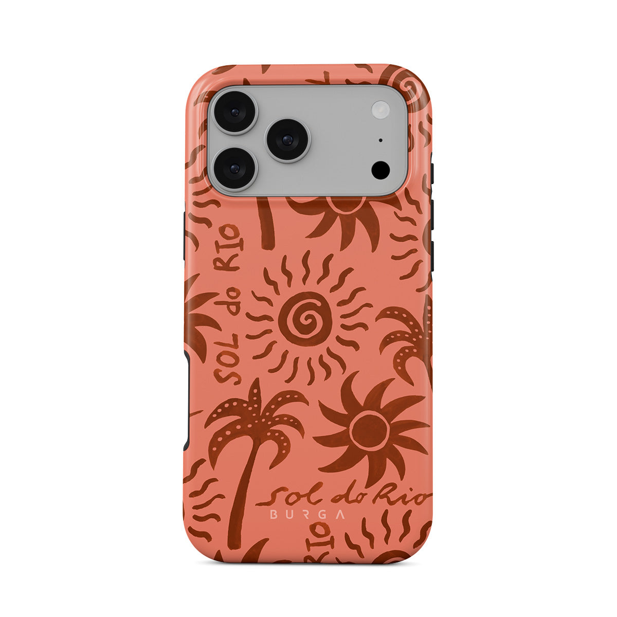 此設計特色: 太陽圖案、棕櫚樹、抽象形狀、溫暖的地球色調
