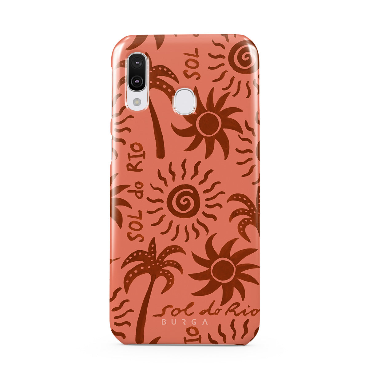 此設計特色: 太陽圖案、棕櫚樹、抽象形狀、溫暖的地球色調