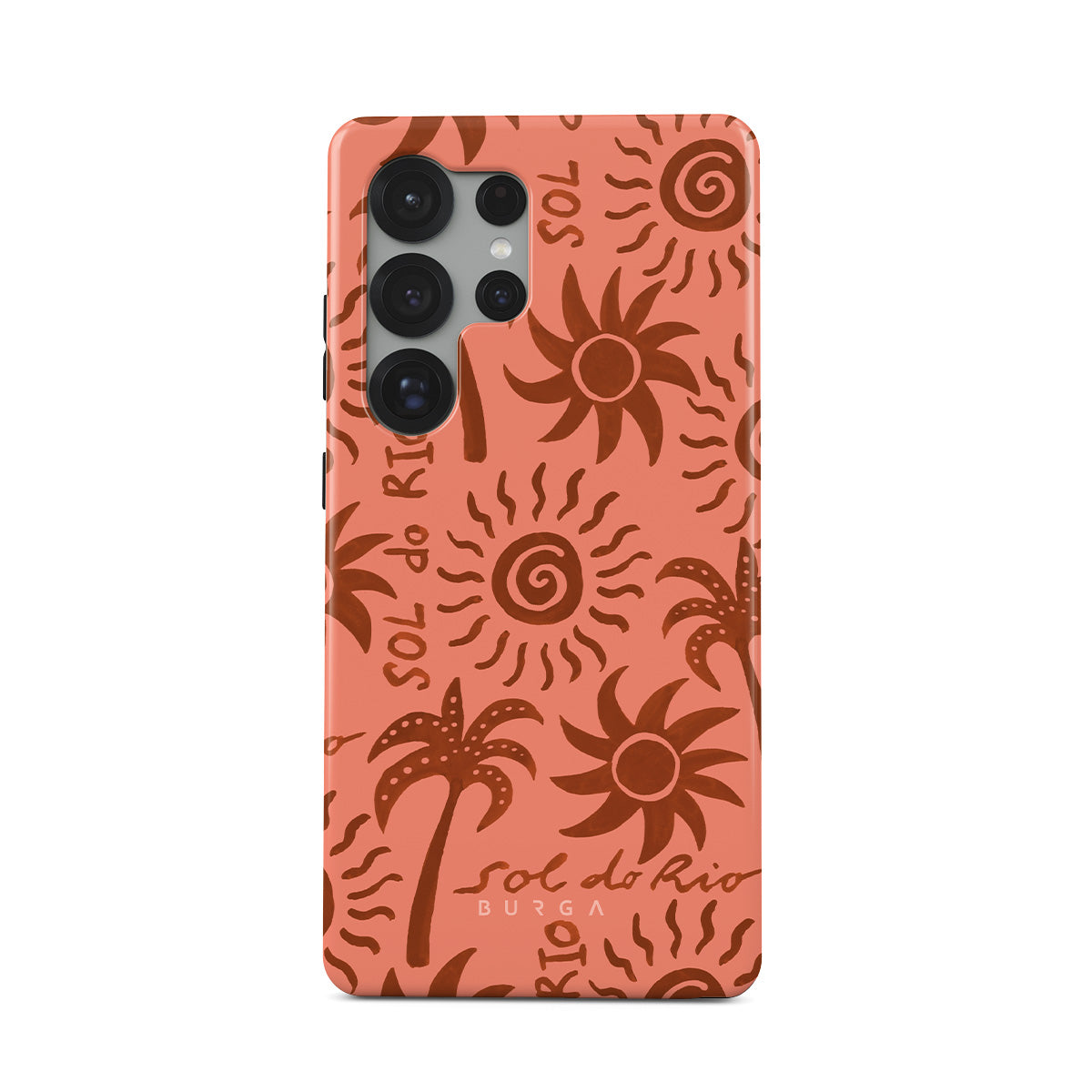 此設計特色: 太陽圖案、棕櫚樹、抽象形狀、溫暖的地球色調