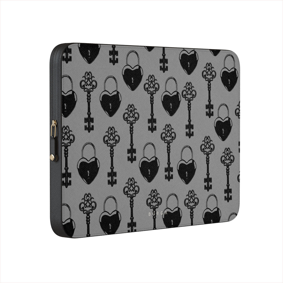 此設計包含:精緻鎖具、復古鑰匙、黑色細節。