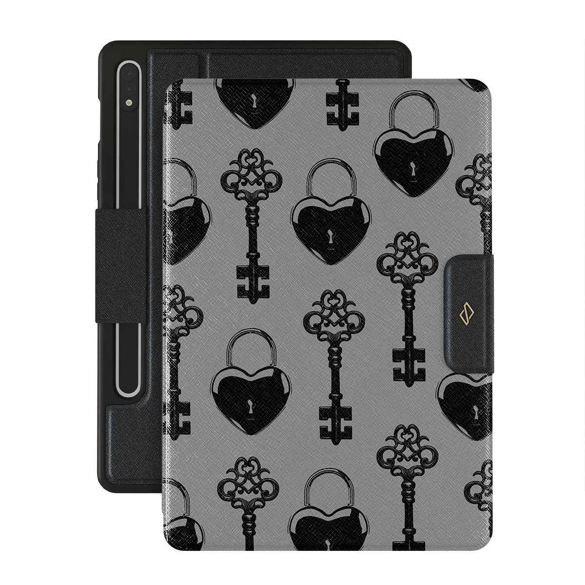 此設計包含:精緻鎖具、復古鑰匙、黑色細節。