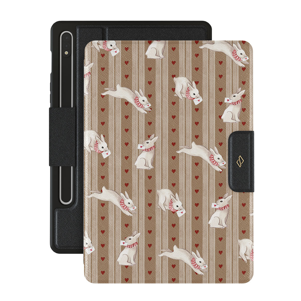 此設計特色: 白兔、紅心、愛、信件、復古條紋