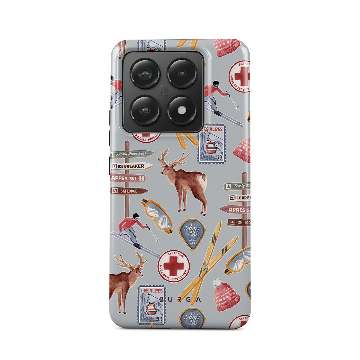 此設計特色:復古滑雪海報,復古滑雪度假村,馴鹿插畫,滑雪纜車設計,阿爾卑斯圖案,冬季運動,經典滑雪小屋風格,山區度假村圖形