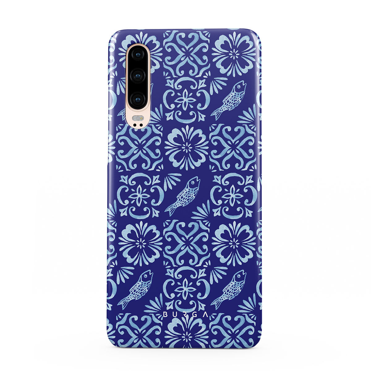 此設計特色: 葡萄牙瓷砖图案,深蓝色,花卉图案,花朵,鱼类