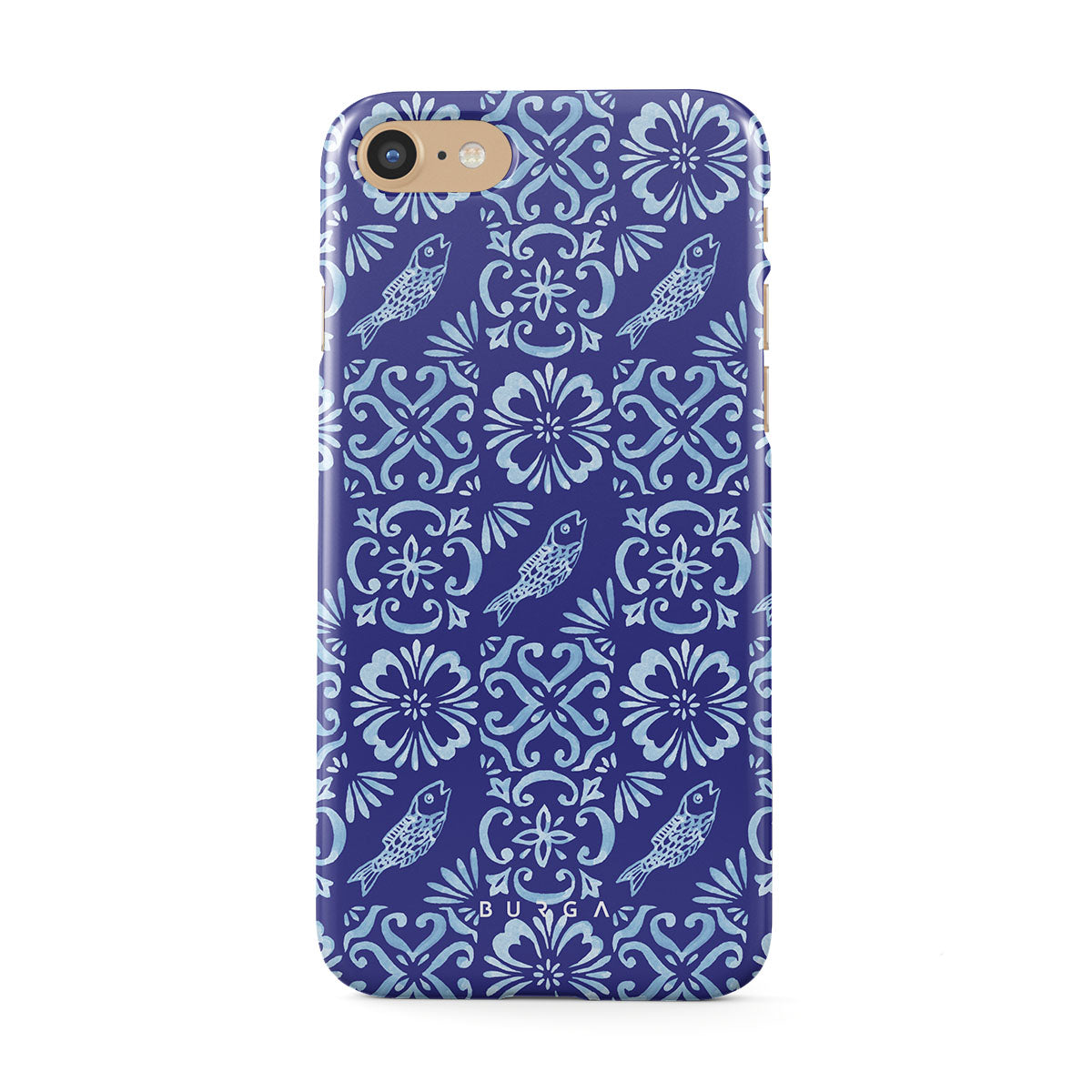 此設計特色: 葡萄牙瓷砖图案,深蓝色,花卉图案,花朵,鱼类