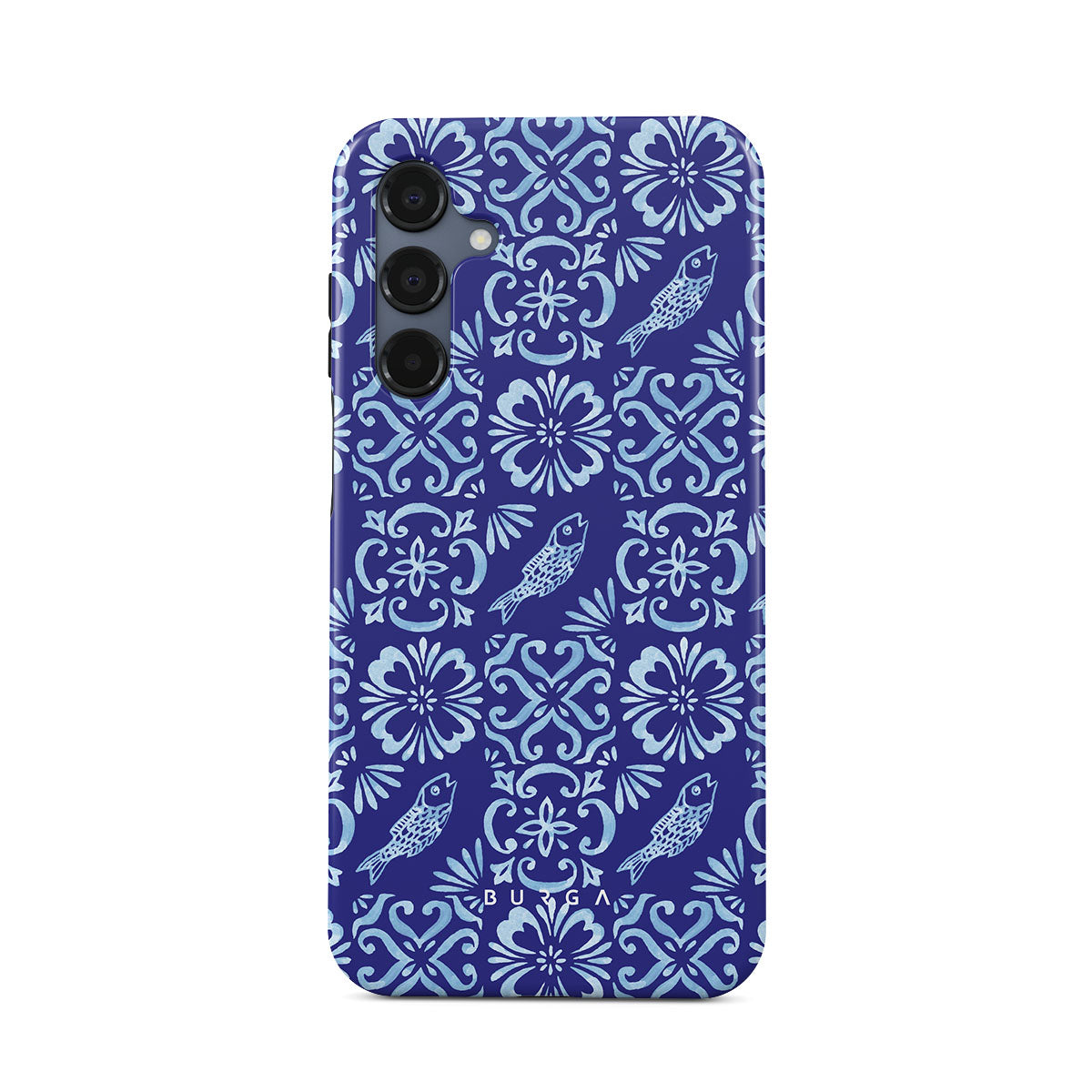 此設計特色: 葡萄牙瓷砖图案,深蓝色,花卉图案,花朵,鱼类